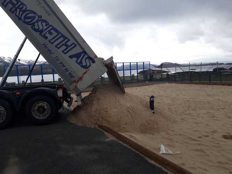 Mye på grunn av nydelig oppslutning på SPLEISEN kunne vi bestille sand. Den kom i dag, nå er det igjen strøkne forhold og klart til en ny sesong!! :) Regningen er ikke kommet enda :) Så vi tar en liten innspurt opp til 15000,- !!! ???