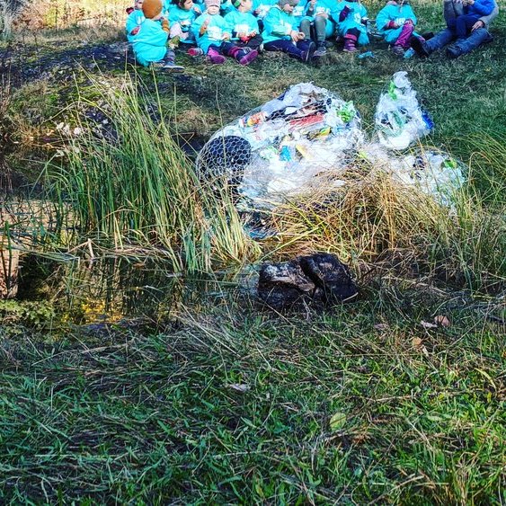 Klokkergaarden Kultur- og Naturbarnehage ligger idyllisk til i Bragernesåsen og på Drammens tak. Avdelingen Knerten 2 består av 18 barn og har siden august plukka plast i skogen vår som har resultert i et prosessorientert kunstprosjekt vi kaller Fisken. Materialer er tre, hønsenetting, ståltråd og masse plast. Barna har etablert en grunnforståelse for at plast i naturen ikke er greit og at plast ødelegger dyras- og spesielt elgens matfat. Elgen fordi vi er spesielt opptatt av den etter å ha støtt på den ved flere anledninger i våres.