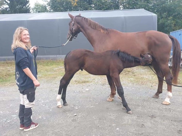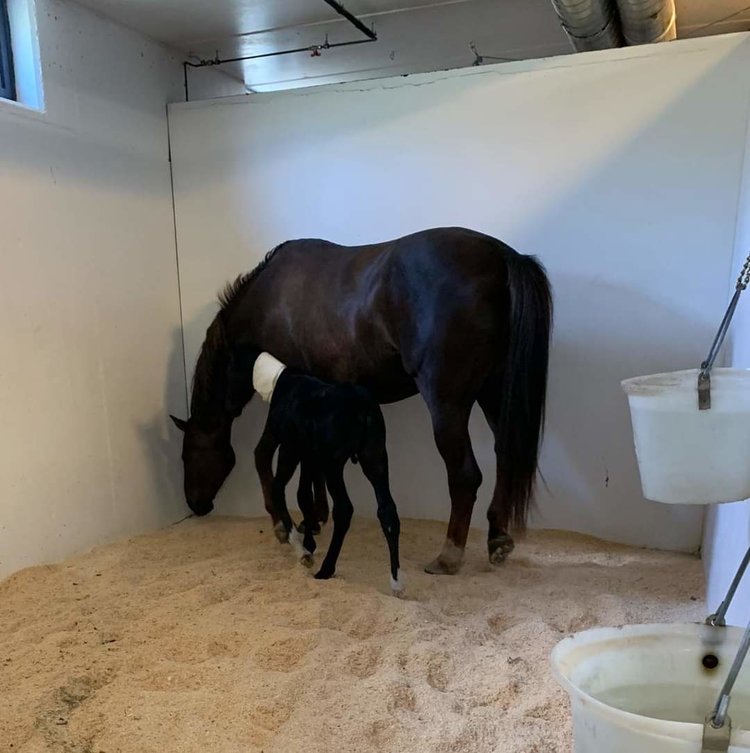 Salg av diverse eiendeler og hesteutstyr, bidrar til at hun etterhvert kan kjøpe ny hest. Valget falt på ei drektig norsk varmblodshoppe, og planen er i utgangspunktet å selge føllet og beholde hoppa. Det viser seg at hoppa har kissing spine, og kan derfor ikke brukes til ridning, da det er så smertefullt for henne med rytter på ryggen at hun bare bukker. Ny plan blir derfor å beholde føllet. Som sagt, så gjort. Juni 2020 ser lille Sonic dagens lys, en perfekt svart hingst med hvit stjerne i panna og to hvite sokker. Livet smiler, og Josefine er glad for at ting går rett vei. Lykken ble desverre kortvarig, da Sonic får en betennelse i navlen. Tror vi. Det viser seg å være verre enn som så, det er ikke bsre betennelse i navlen, men den skyldes at urinveien ikke har lukket seg som den skal, og urinen renner ut gjennom navlen til Sonic. Dette har ført til en betennelse som går helt inn til urinblæra. Lille Sonic må kjøres til Bjerke for å opereres, og selv om forsikringa dekker mye av dette, blir også egenandelen stor. Operasjonen er vellykket, og endelig kan sommeren komme, med beitetid og lykkelige hester! :blush: Eller... Halt føll. Ny tur til Bjerke. Ingen årsak funnet, men en runde på antibiotika. Ikke mer beite, , da han må følges nøye opp resten av sommeren. Høsten forløper relativt problemfritt :raised_hands: Sonic flytter etterhvert til en utegang for unghingster, der han skal få leke med andre på egen alder gjennom vinteren, og kose seg og være skikkelig hest :grin: Men igjen, nye skår i gleden. Først våteksem, og deretter får han separasjoner i begge høvene foran. Etter undersøkelser blir det anbefalt at han får stå tørt om natta, og får vasket og stelt høvene daglig. Sonic flytter derfor tilbake til Stall Rustad, og fra da av går det bare slag i slag med dyrlege og hovslager. Beina begynner nå å se normale ut igjen, etter noen uker med støping av høver, spesiallaga sko, gips, og uendelige forsøk på å få dette til å sitte på i mer enn to dager i strekk.