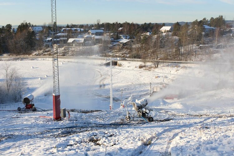❄️ Nå er kulda kommet og det er optimalt å produsere snø til slalombakken vår. Vi benytter 2 stk snøkanoner til dette. Normalt må vi produsere ca 1 uke ved gode nok forhold for a dekke mesteparten av bakken.🏂