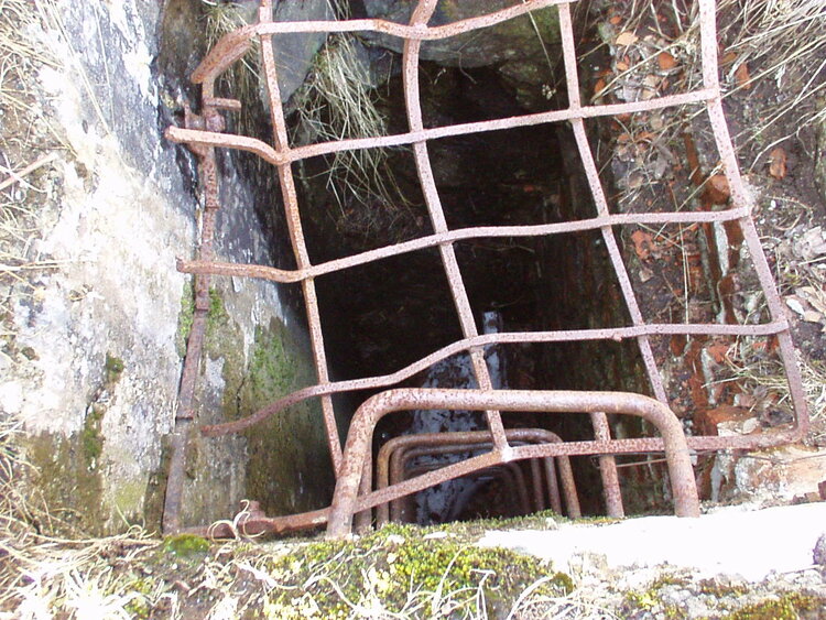 Sjakten slik den så ut for noen år siden. Gitteret har vært borte i mange år og det er nå et åpent hull nesten 5 meter ned.