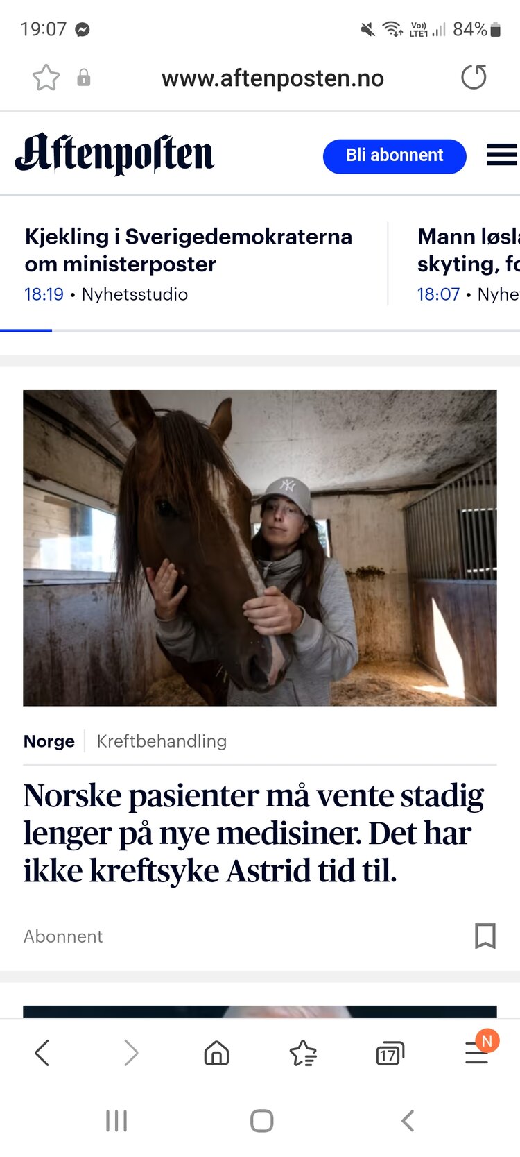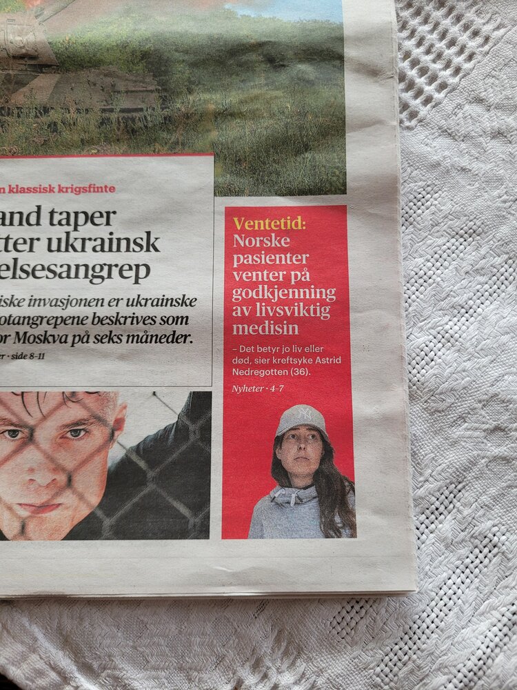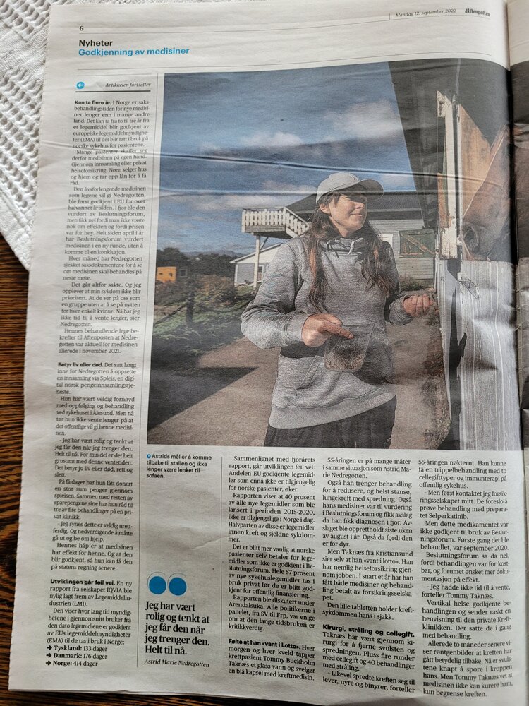 Astrid kom gråtende bort til meg og sa at de hadde ringt, og at hun hadde fått brystkreft med spredning. Jeg var helt i sjokk. Verden bare kollapset. Vi stod der og holdt rundt hverandre og gråt en stund før hun slapp og sa vi måtte fortsette å jobbe.