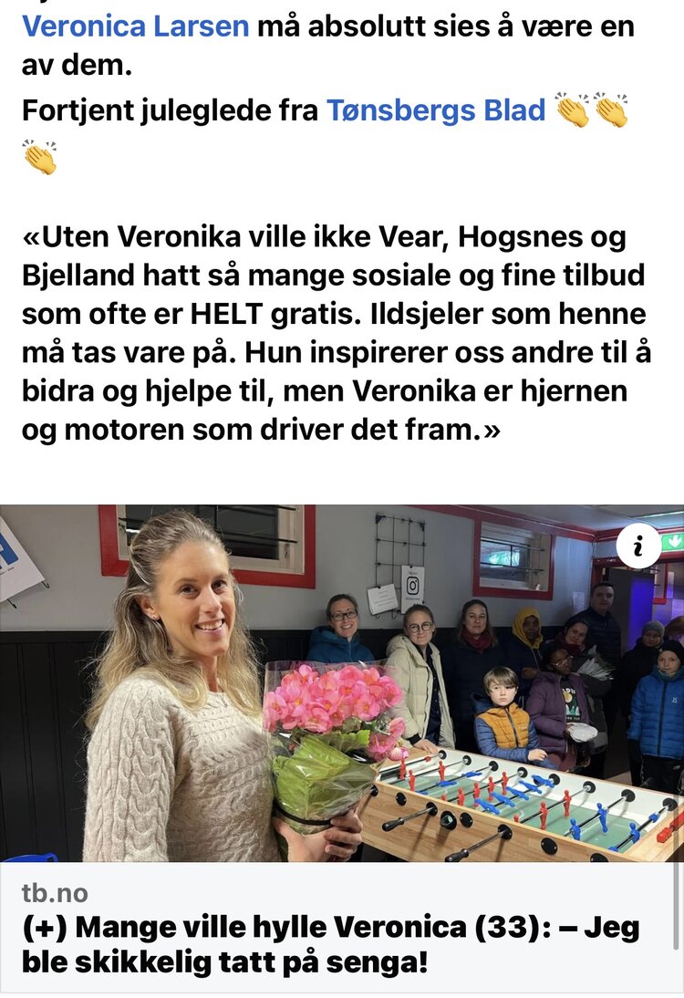 Vil gjerne bidra til at Veronica kan drifte klubben videre :) hun gjør en fantastisk innsats for lokalsamfunnet med null i midler. Det som tilbys er donert fra Meny Jarlsberg, fra frivillige kakebakere, samt at lokalet leies gratis fra kommunen.