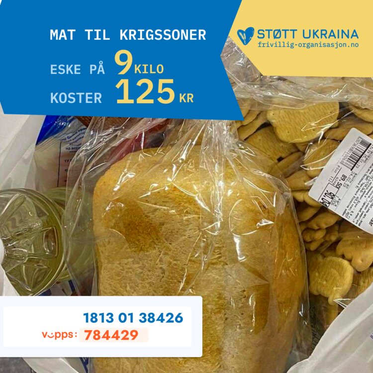 Organisasjon "Støtt Ukraina" (www.frivillig-organisasjon.no) samler inn penger for å kjøpe mat til de som bor i krigssoner i Kharkiv-regionen.