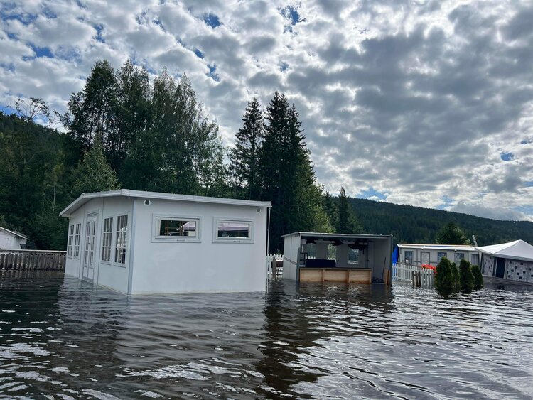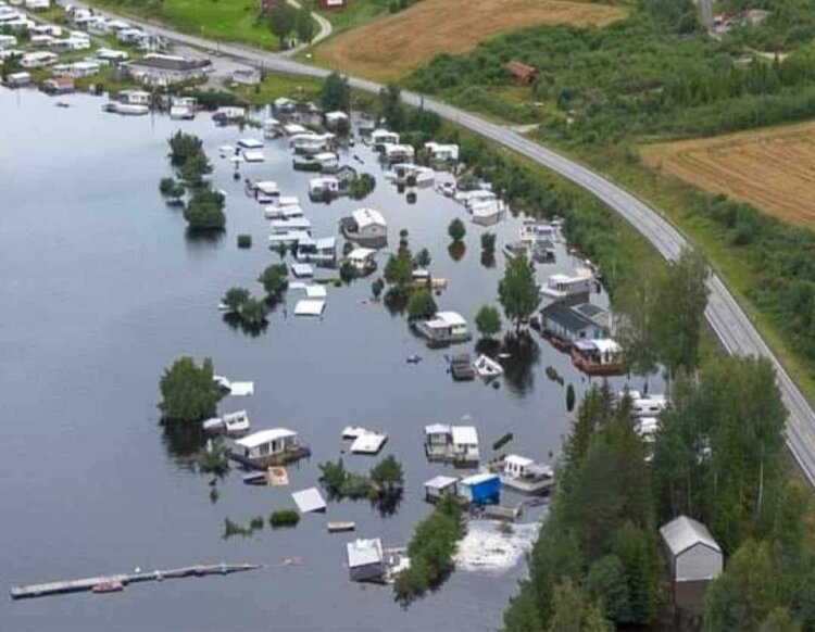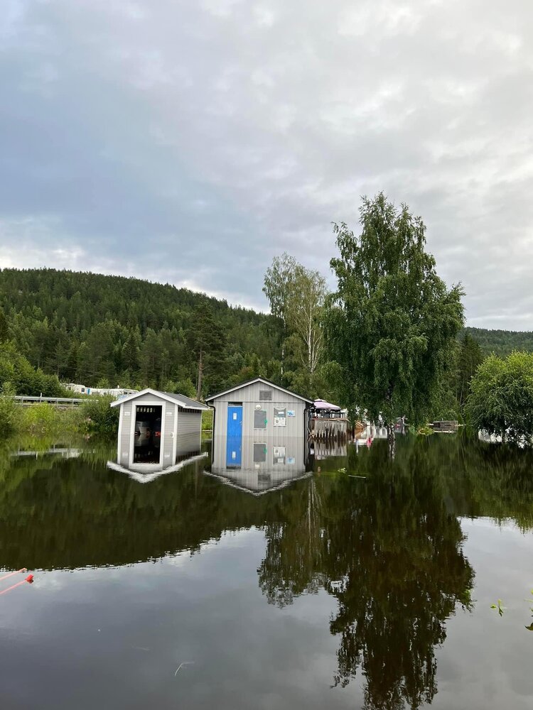 09.08.23 Ble da vår camping tatt av Hans på Buttingsrud Camping, der alt står under vann. Vannet steg for fort og innen 2 timer var store deler av plassen under vann. Vi rakk å fjerne vogna og noen små ting, men resten var ikke til å redde.
