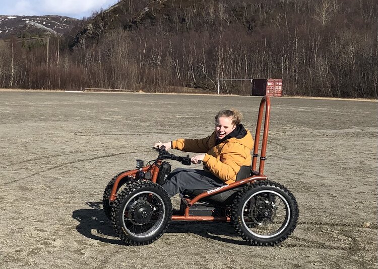 En Exoquad koster 234 000,- kroner, så det er en livslang investering som vi håper og tror skal gi Nor mer frihet til å komme seg rundt både i nærområdet og i naturen. Den er norskutviklet, men dessverre ikke godkjent som hjelpemiddel hos NAV enda.