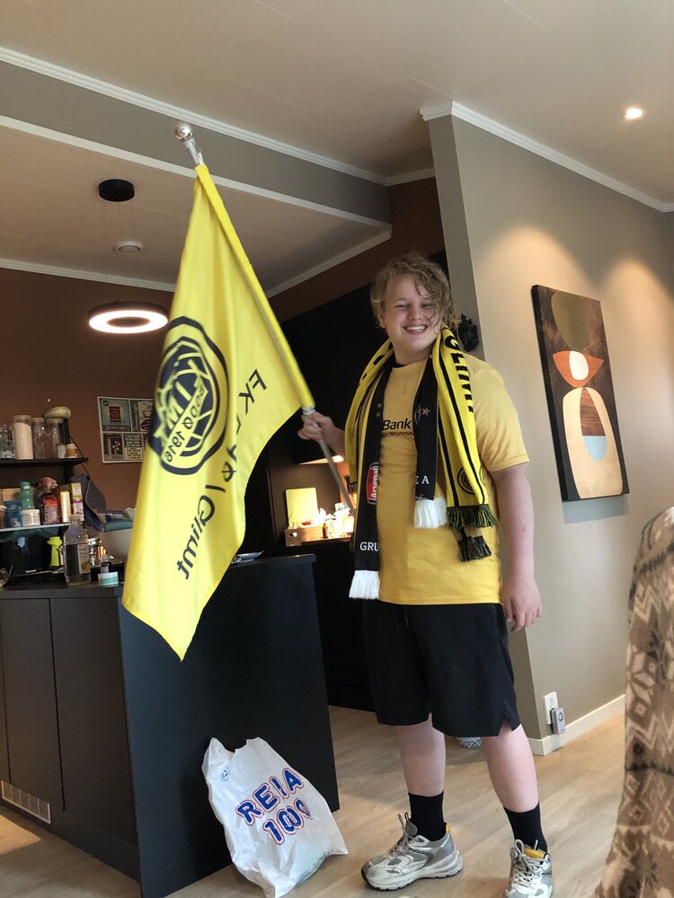 Ivrig Glimtfan før kamp! Nor trener med Glimts Stjernelag hver tirsdag, som keeper!