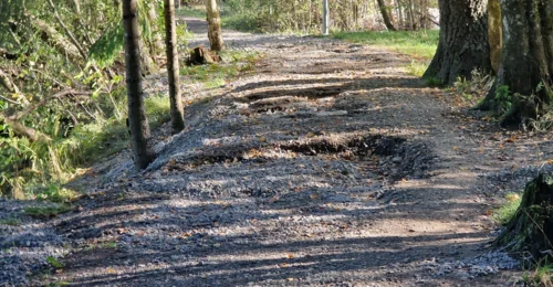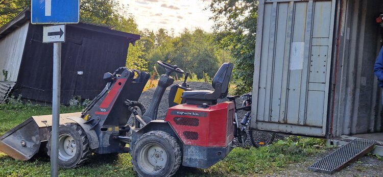 Dugnads bygget sti langs Mysen elva ble veldig ødelagt etter flommen. Det trengs fyllmasse og annet. Og leie inn div hjelpemidler. Som F.eks en slik.