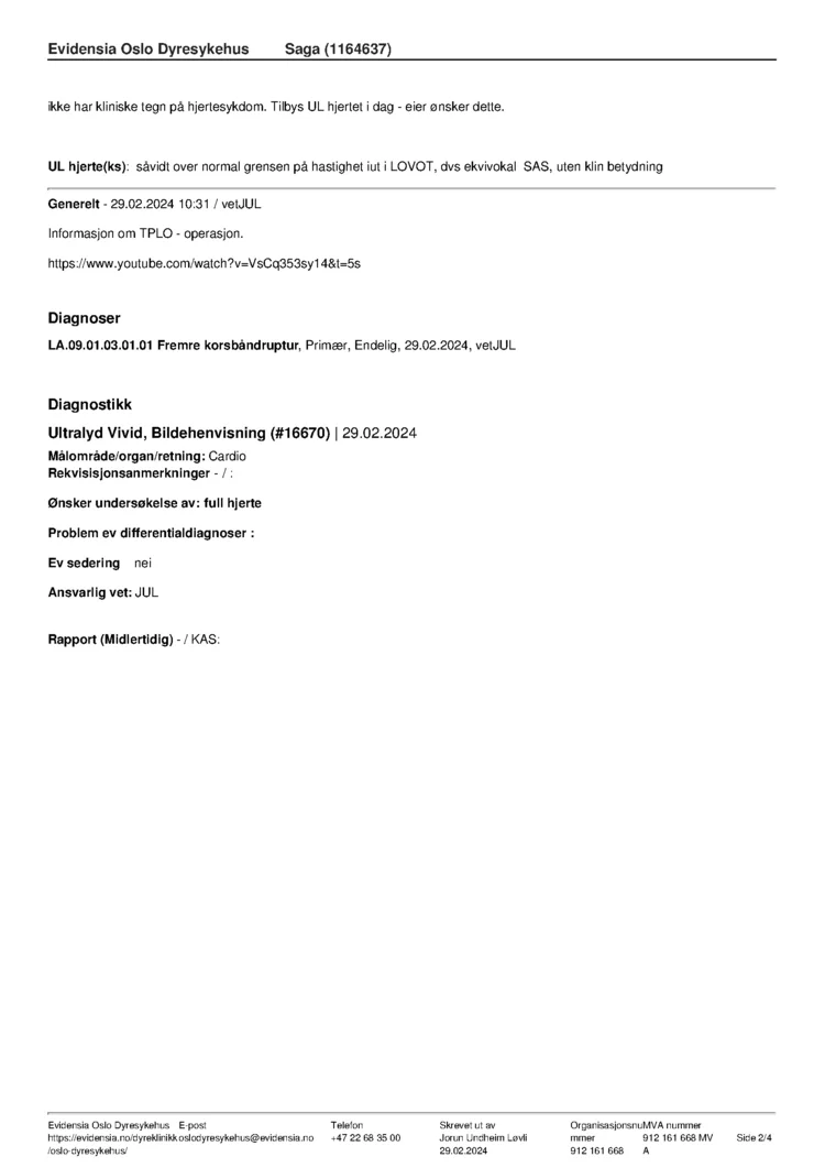 P.S. Please find the vet's evaluation and link to the video about the surgery.