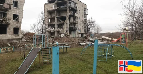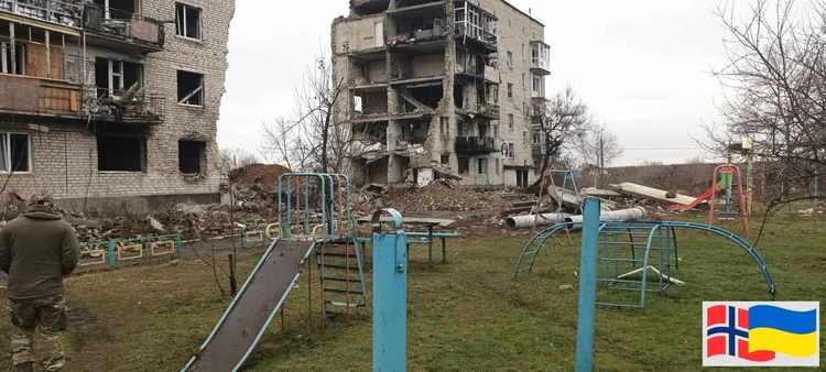 Dette bilde ble tatt i Izium av våres nestleder på vår siste tur nå i februar 2024. Vi leverte på denne turen 1400Kg med medisinsk utstyr fram til fronten.