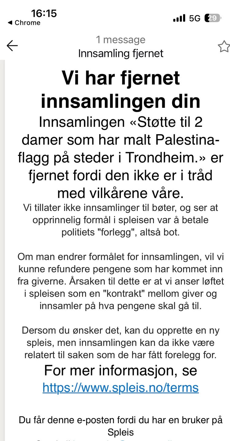 Grethe og Marit oppfordrer alle givere som støttet spleisen: 'Støtte 2 damer som har malt Palestina-flagg på steder i Trondheim', og som ble fjernet, om å donere samme beløp til denne innsamlingsaksjonen som er opprettet for å vise solidaritet med kvinner i Gaza.