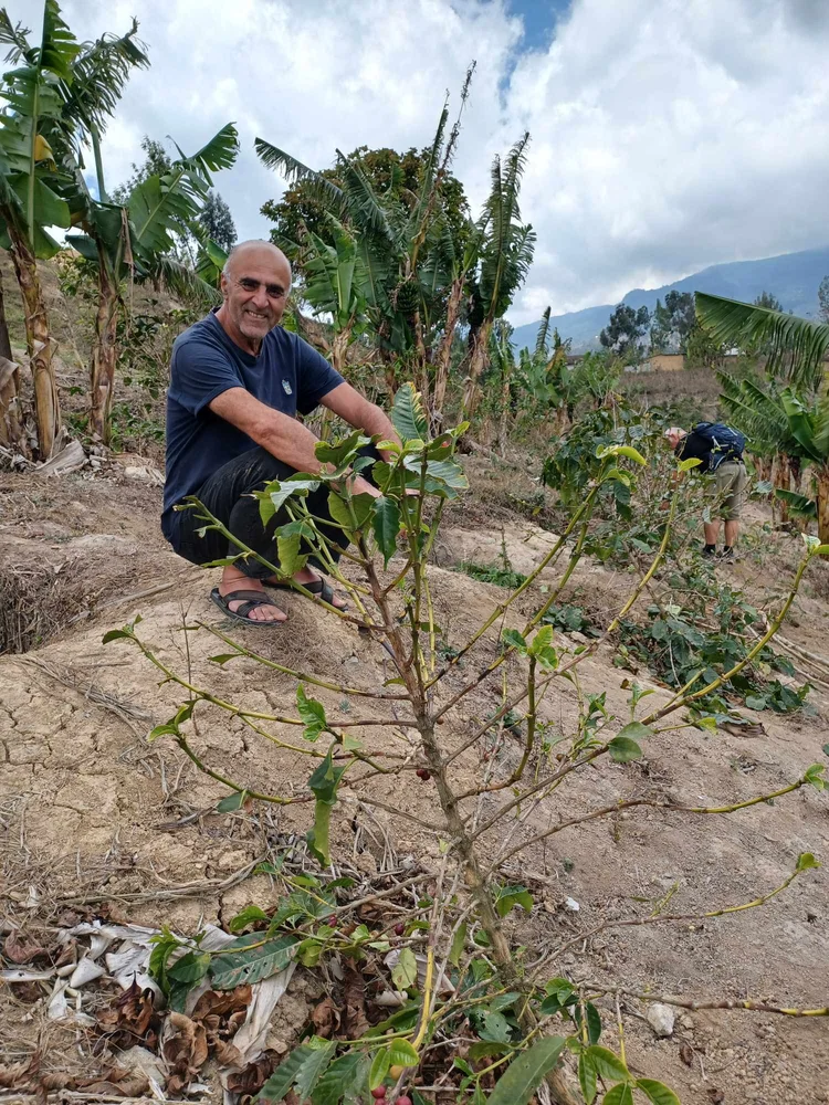 Hamid koser seg under besøket på kaffefeltet til Mgeta Livelihood Development Foundation og Mgetas venner i Uluguru-fjellene. Men kaffebuskene tørster. Vennene har etablert en dam og bygger nå to dammer til, men kan bare fylle dammene to ganger i uka. For å fordele de verdifulle dråpene for å dekke tørsten i tørken fra juli til november trengs et dryppanlegg til de 2000 buskene. Inntektene fra kaffesalg fra feltet går til et kaffeprosjekt med om lag 700 bønder fra 20 landsbyer i Mgeta. Pengene dekker kjøp av kaffe til sikker pris fra bøndene i prosjektet og betaler driften av kaffeprosjektet.