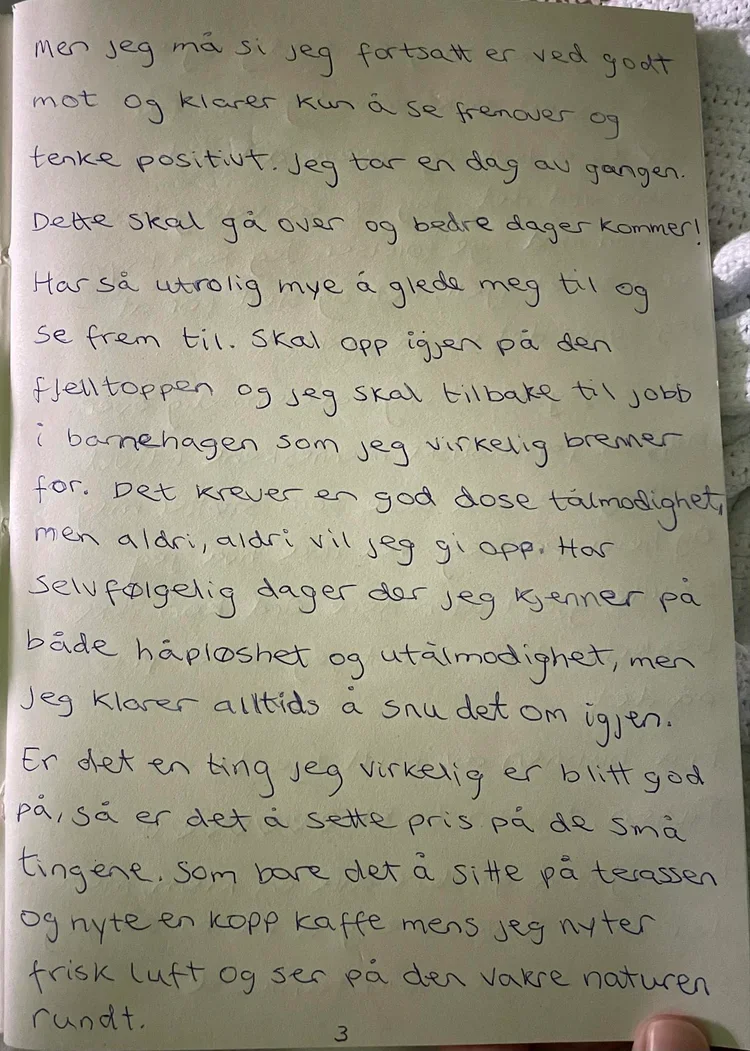 Det vil gjøre det mye enklere og tryggere for henne å komme tilbake til hverdagen hjemme, og gi oss den nødvendige tryggheten i forhold til hennes pleie og omsorg.