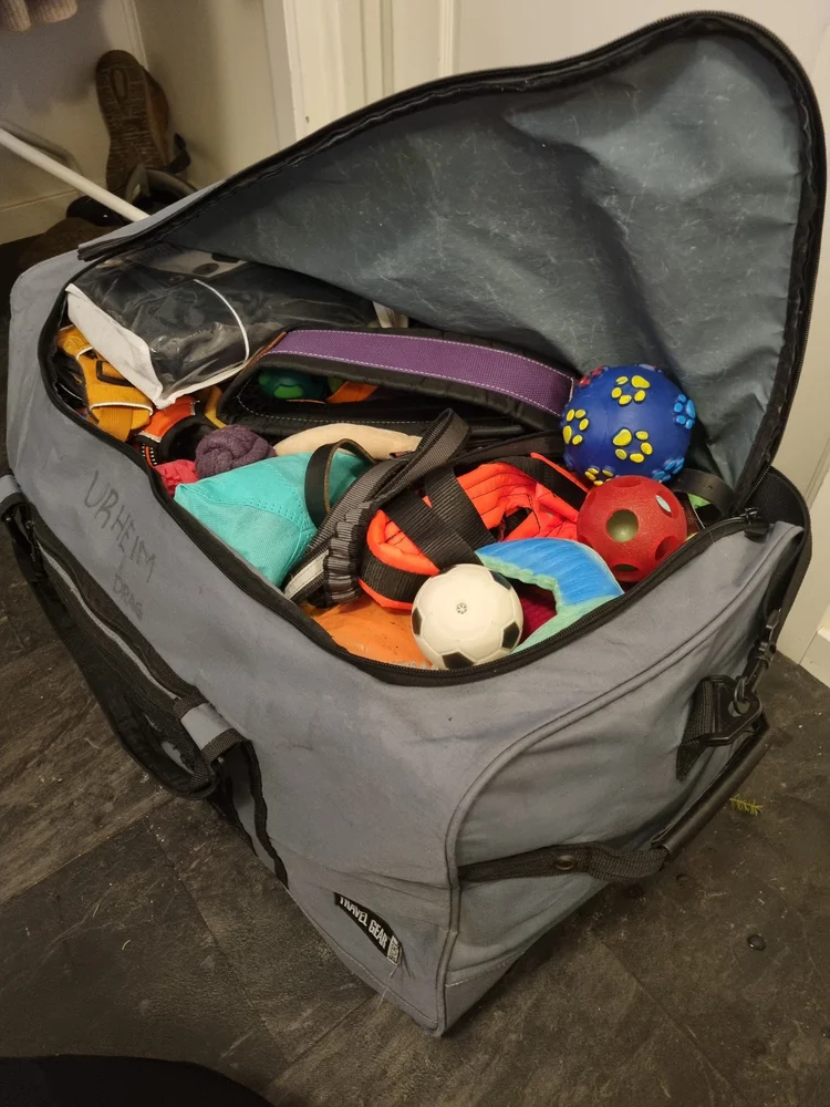 Jeg har samlet inn hundeutstyr fra snille folk i Tromsø og omegn, alt fra hundegodteri, seler, bånd, leker og hundesenger.