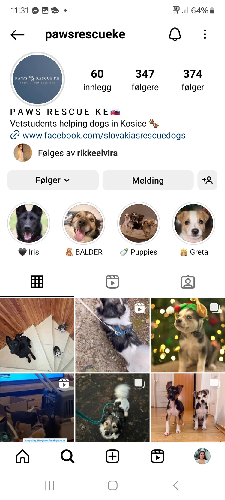 Deres Instagram hvor de legger ut bilder av hundene som er i fosterhjem!