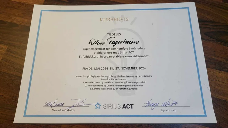 I tillegg gjennomførte jeg et 6-måneders program hos Sirius ACT, en organisasjon som spesialiserer seg på profesjonell utvikling og entreprenørskap. Dette programmet ga meg ytterligere innsikt og ferdigheter som har vært avgjørende for veksten av Bilfreak.no. Sirius ACT har fokus på å utvikle både mennesker og virksomheter, med en resultatorientert og evidensbasert tilnærming til profesjonell utvikling.