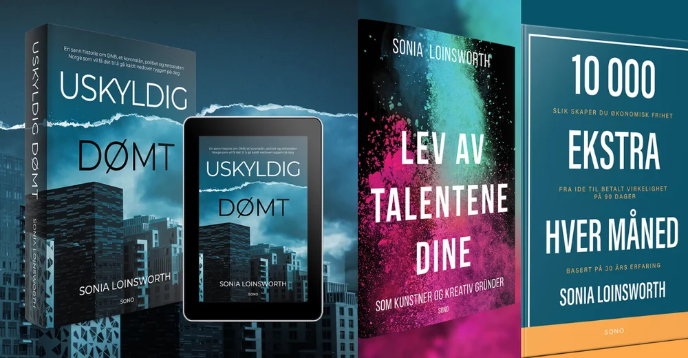 2) Tre bøker fra Sonia's penn: Lev av talentene dine, 10 000 ekstra hver måned og Uskyldig dømt