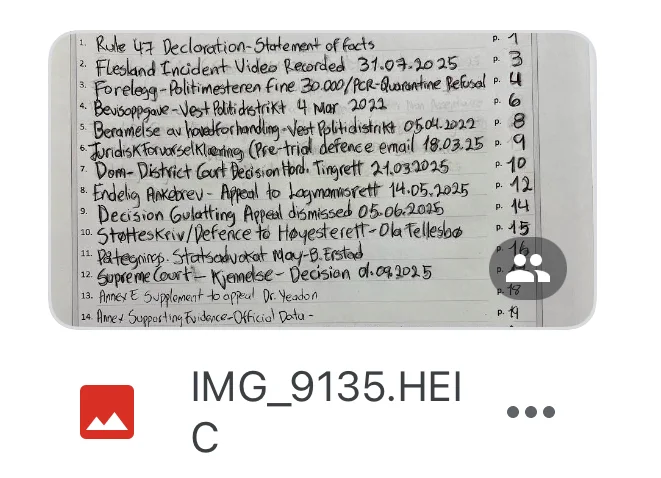 📎 Samtidig har jeg begynt å forberede en eventuell klage til Menneskerettighetsdomstolen i Strasbourg (ECHR), i tilfelle Høyesterett ikke vil ta saken.