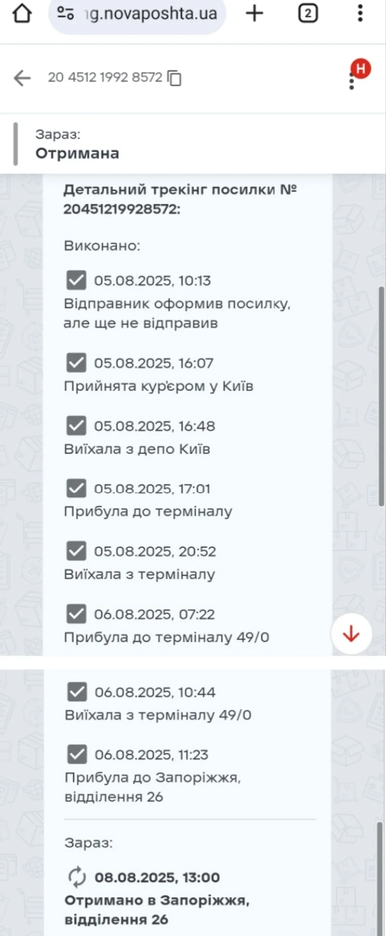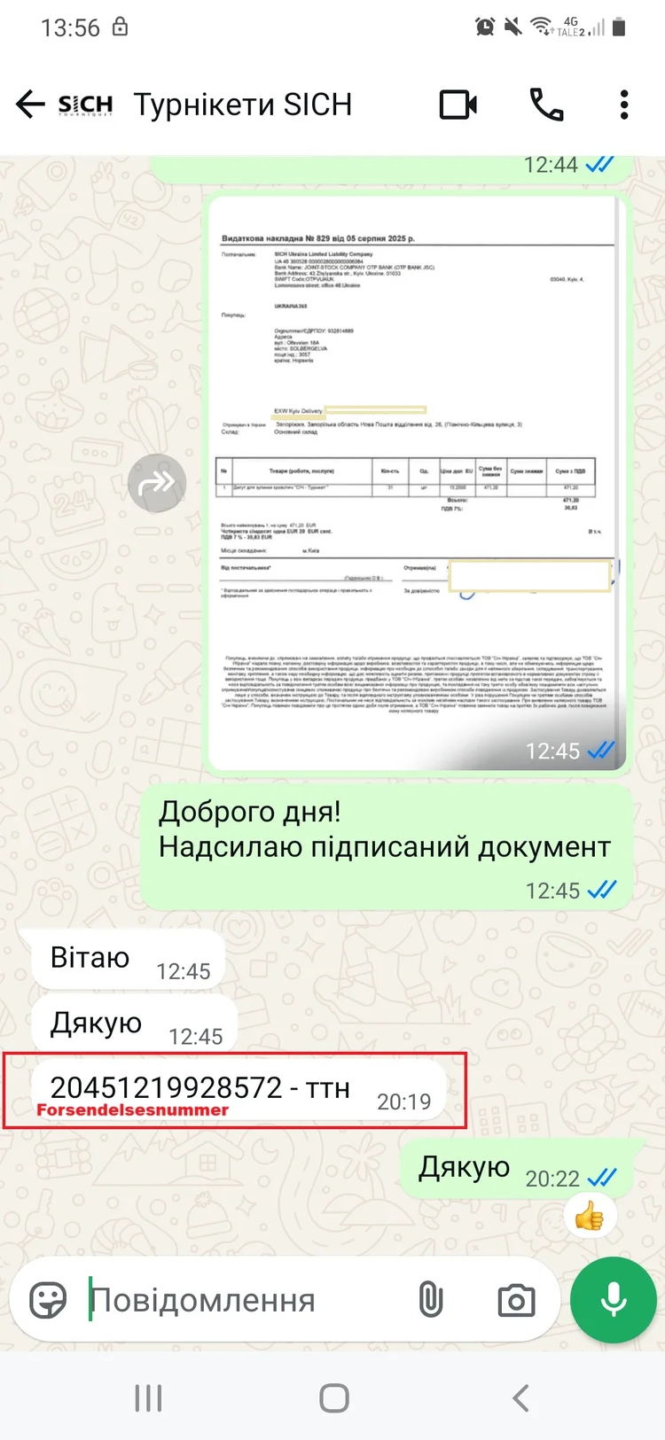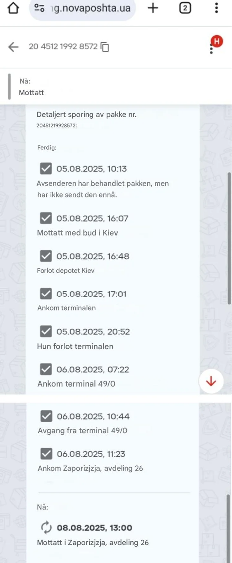 Bestillingen ble sendt 5. august til Zaporizjzja-regionen (sør i Ukraina), og ble hentet 8. august.