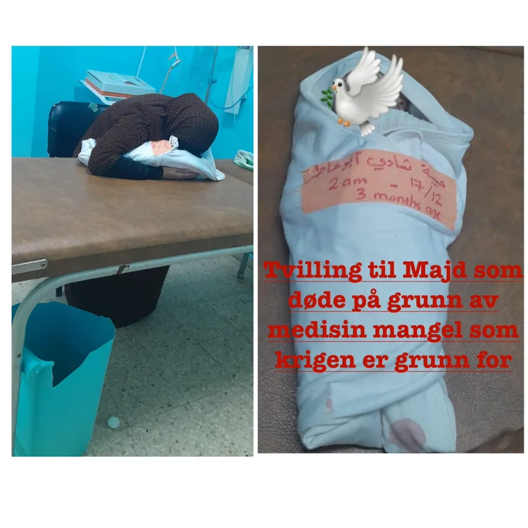 Majd ble født 16. september 2024 og er min søsters sønn. Han er barn av en far som er IT-ingeniør med eget firma og en mor som er sosialarbeider og tidligere jobbet som assistent på en skole. Han har to brødre og to søstre. På grunn av krigen mistet de alt – huset, firmaet, og alle sine eiendommer. Nå bor de i et plasttelt som fungerer som soverom, kjøkken og stue. Majd ble født som tvilling, men på grunn av mangel på medisiner i Gaza døde tvillingsøsteren hans. Nå lider han av sult og har begynt å svekkes fysisk.