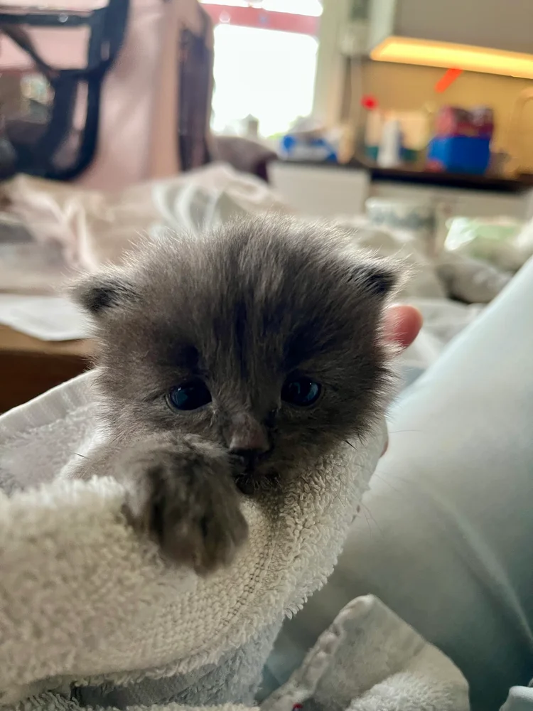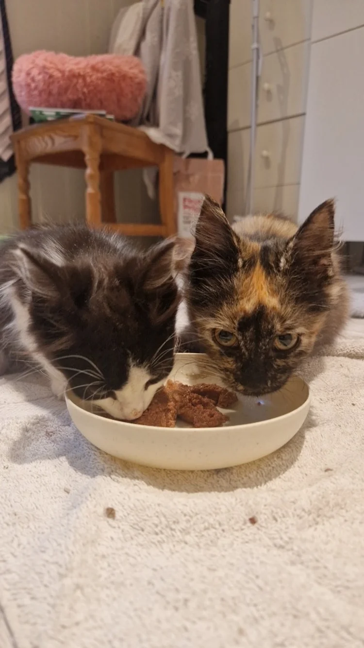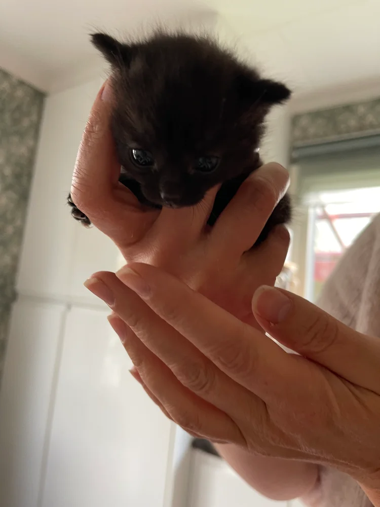 En av de som kom inn var en mor med to små barn. Vi så at mor var syk og hørte at ungene strevde. Mor er i tillegg sky (mulig mindre sky om hun ikke var syk). Hun sluttet delvis å produsere melk. Ungene gikk ned i vekt over tre dager så vi måtte hjelpe til. Mor har og nok med å ta vare på seg seg selv nå😿 Hun får behandling💊