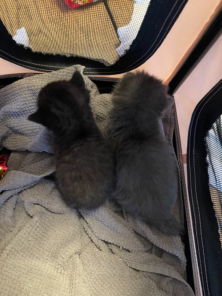 De to nøstene var ca 10 dager gamle og hadde i starten problemer med avføring da den forsteinet seg og tørket inn. Veterinæren hjalp raskt hjalp til og etter et par dager var de fine i magen. Tusen takk til Ås Dyreklinikk ved Maria som har kommet til beredskapshjemmet og hjulpet til morgen og kveld i flere dager. Nå legger begge på seg, de er ikke lenger dehydrerte. Begge tar nå flaske fint👌