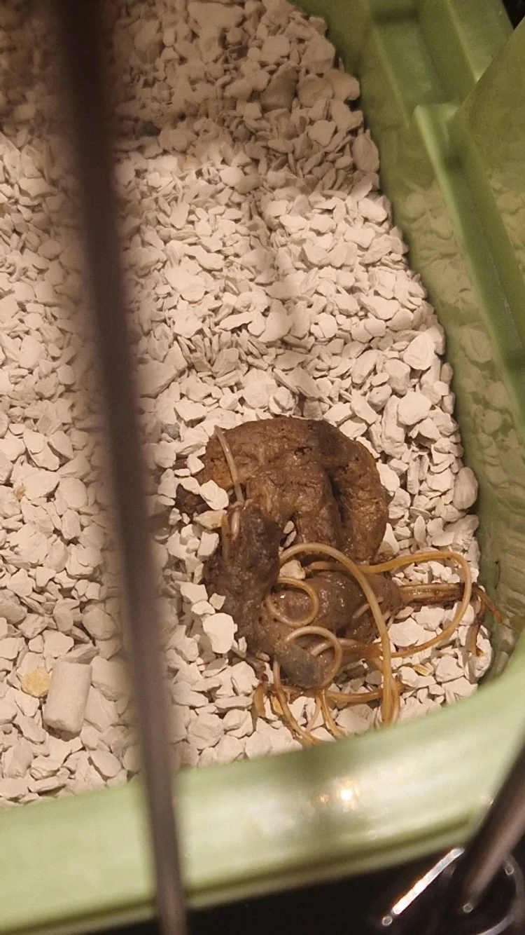 Resten ser fine ut foreløpig men alle har mye lus i pelsen og orm i magen. Det er helt greit å behandle og blir borte etter et par dager. Lusa går ikke på mennsker. Men vi vet jo alle hvordan det er å gå med lus selv de som ikke har hatt det🙀 Ormen vist på bilde under hører til en kattunge på ca 8 uker😼. Ikke sikkert hun hadde vokst opp.