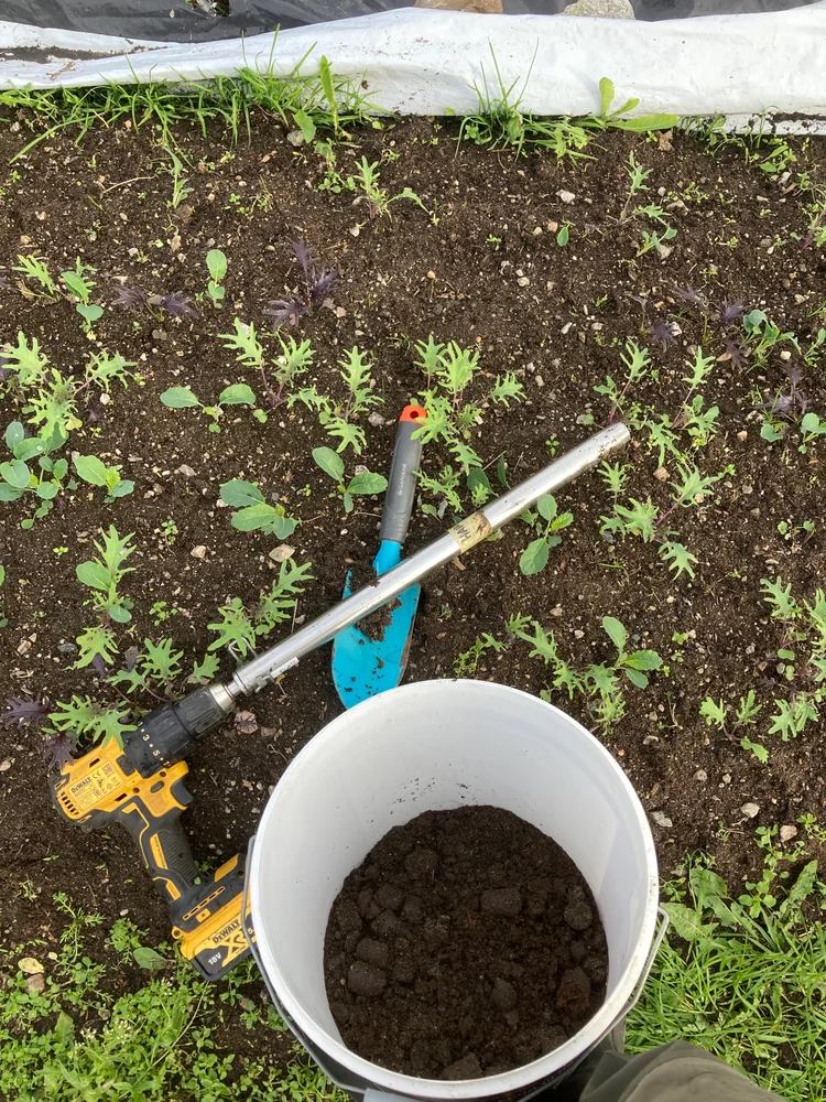 I år tar vi også jordprøver fra hagen og jordene for å få en pekepinn på hvor vi ligger an og hva vi kan gjøre for å bygge opp jorda og samtidig dyrke enda bedre mat til folk og fe.