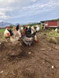 Hønsene får bo ute ei stund til, men vi merker allerede at vi får færre egg på grunn av minkende lys og lavere temperaturer. Men, de har det enda såpass fint på godværsdagene at vi ikke har hjerte til å sette dem inn riktig enda.