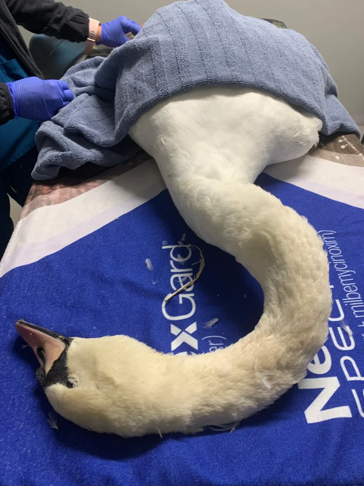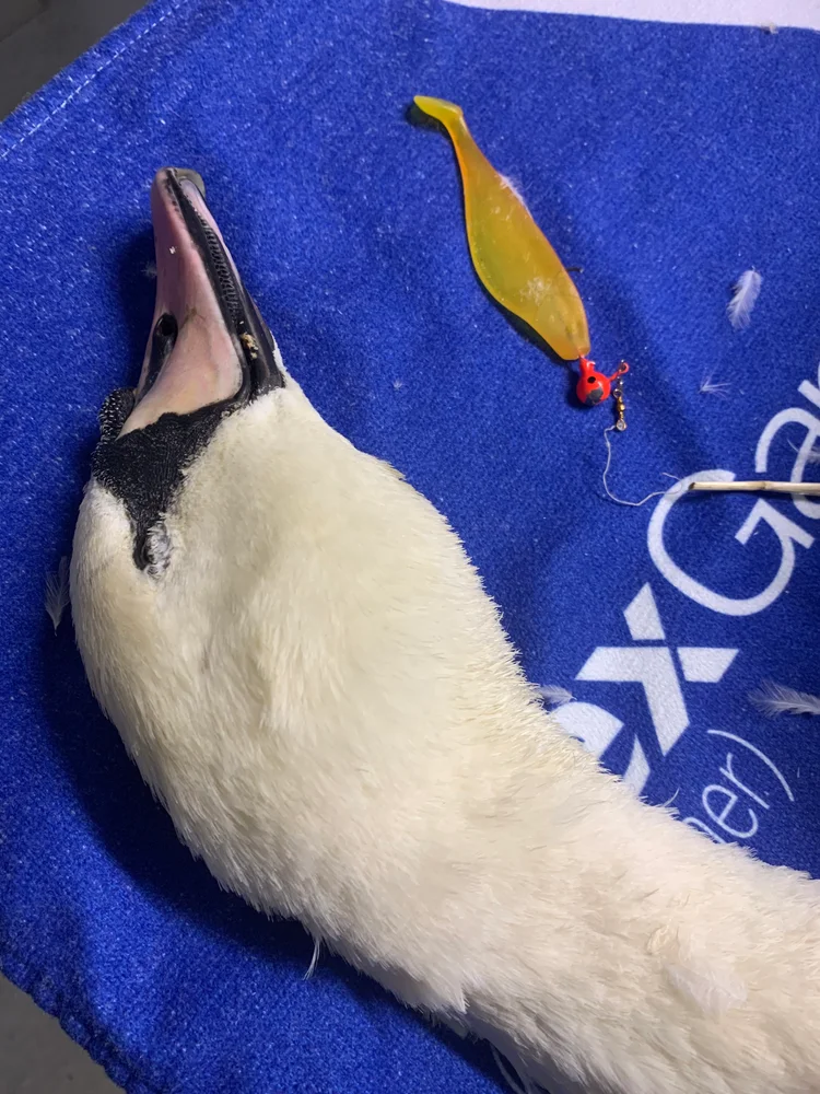 Vi fortsetter I tillegg vårt arbeid med å verne om svanene i Bergensområde. I går måtte vi atter en gang til Tveitevannet for å hjelpe en ung knoppsvane av med fiskekrok og snøre.