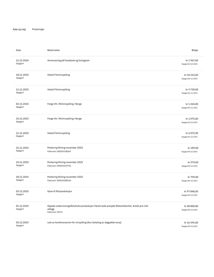 Regnskap for Spleisen - filmproduksjon Rettssikkerhet for alle