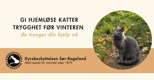 Hos Dyrebeskyttelsen Sør-Rogaland gir vi hjemløse dyr trygghet, mat og varme.