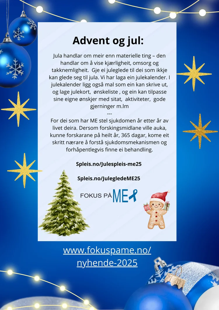 Tusen takk til kvar og ein som har støtta spleisen. Fokus på ME har oppdatert heimesida med ein julekalender og video frå forskarane ved Haukeland ❣️