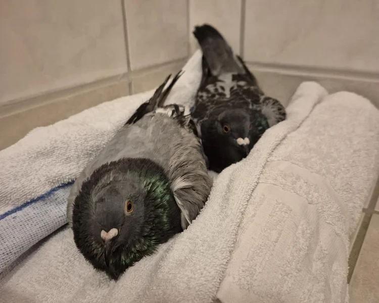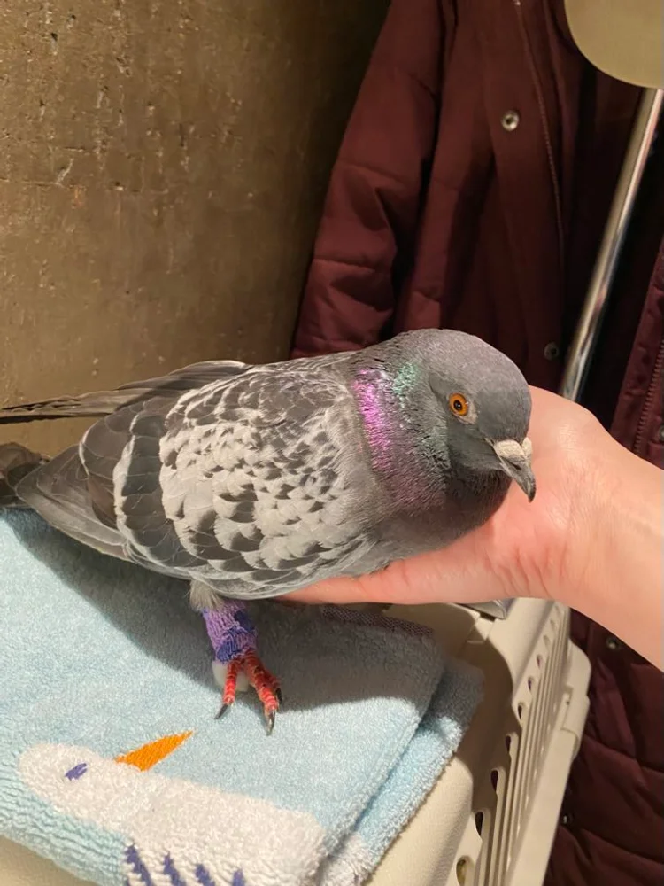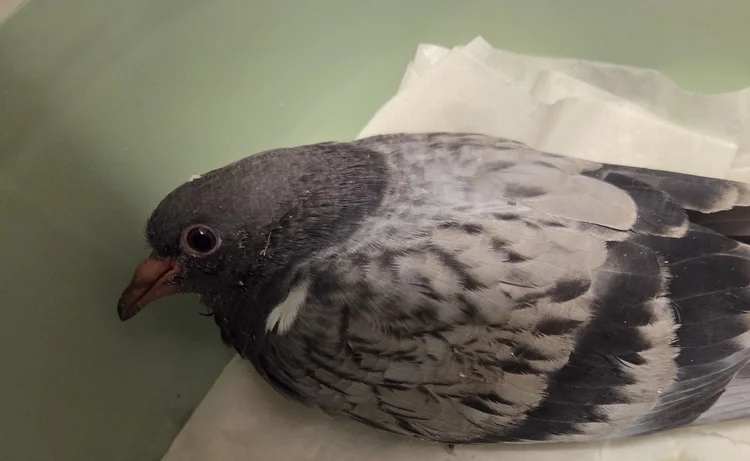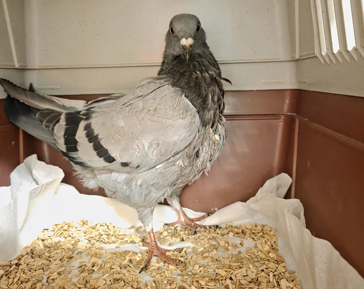 Sultan ble funnet ved bussterminalen i Oslo og har trolig overlevd et rovfuglangrep. Han hadde fire sår på brystet og i nakken. Tre av dem hadde tatt hull på kroen, formagen til duene, og mat bare datt ut. Veterinæren måtte sy alle fire kutt og det var en lang operasjon. Under er bilde av Sultan etter operasjonen. Han kommer til å bli helt fin igjen. Prislapp: kr 6000