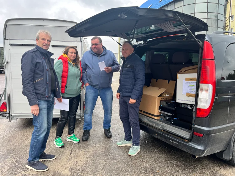 Vi har med nødvarer fra Florø/Førde-regionen og Halden/Fredrikstad. Hjelpen kommer til/via