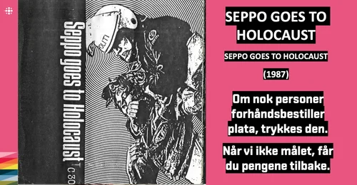 Seppo Goes To Holocaust hadde en kort karriere, men rakk Ă„ gi ut en kassett i 1987 og en 7ââ i 1989 som har satt varige spor i den norske hardcore-katalogen. Bandet bestod av TK pĂ„ bass, Claudio Aiello pĂ„ trommer, Sef Foyn pĂ„ gitar og Seppo Giske pĂ„ vokal. Plata var produsert av Per Platou. Kassetten inneholder to coverlĂ„ter ogsĂ„: â3. Rikeâ med Betong Hysteria og âHakekorsâ med Kaare & Partiet. Kassetten gĂ„r for flere tusen kroner brukt.