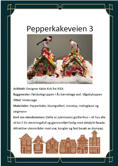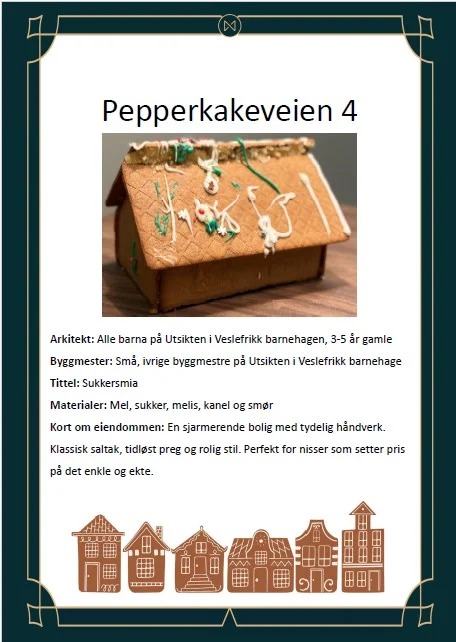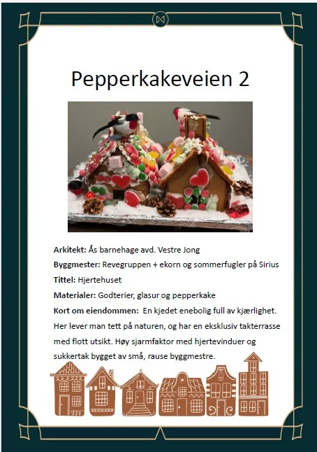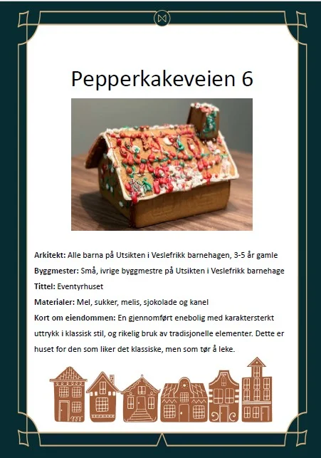 Nordvik Sandvika bryr seg om nærmiljøet. Når julen nærmer seg er det dessverre ikke alle som gleder seg. Vi ønsker derfor å spre juleglede og bidra med det vi kan aller best; å selge boliger. Denne gangen er husene vi skal selge bygget av små byggmestere og spiselig materiale.