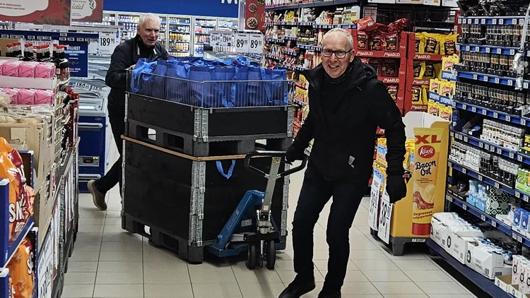 Noen av matkassene er ferdig pakket og på vei til utlevering