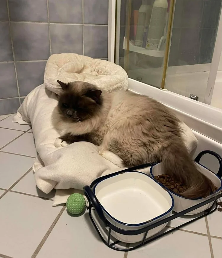 Først Bella (hun er en enten en colourpoint perser eller en mix Perser/Hellig Birma) - damen trives som nedklippet og er en utrolig sosial og morsom personlighet. Lykken i livet er å få ligge under dyna i sengen til fosterhjemmets barn. Bella vil bli tilgjengelig for adopsjon når hun er ferdig med behandling for luftveisinfeksjon og er ferdig kastrert.