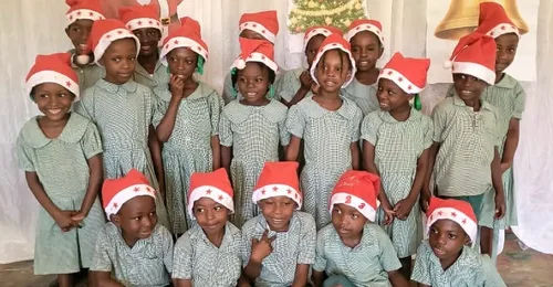 Vi ønsker oss penger til å skape en hyggelig juleavslutning med mat og julegaver til elevene, innkjøp av fotballer og symaskiner til syskolen vår.