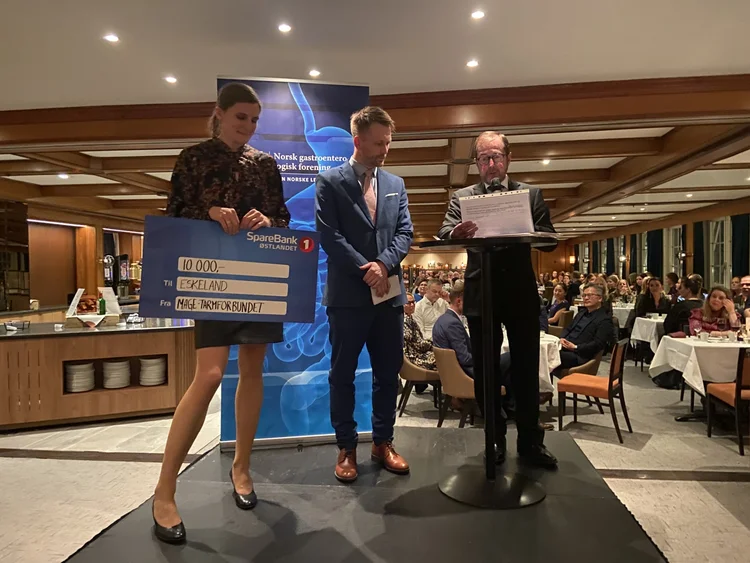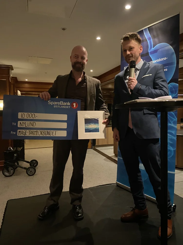 Kim Nylund mottok midler på vegne av prosjektet «Tykkelsesmålinger av submukosa i tarmen hos Crohnpasienter med ultralyd samsvarer med endoskopisk aktivitet.»