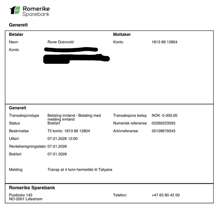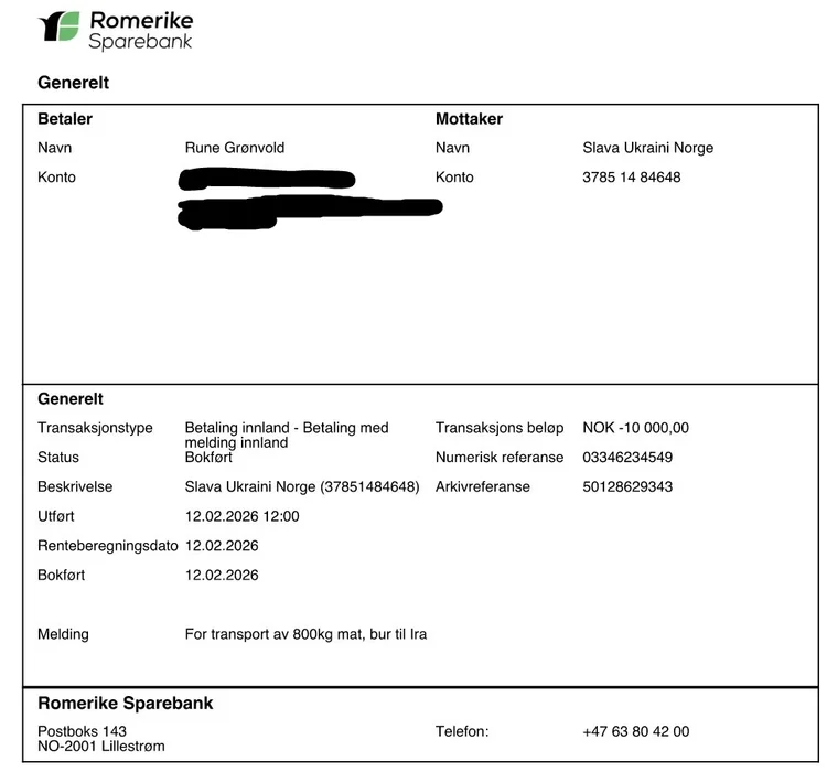 Overføring til PU-TE/ Den Ukrainske forening i Norge.