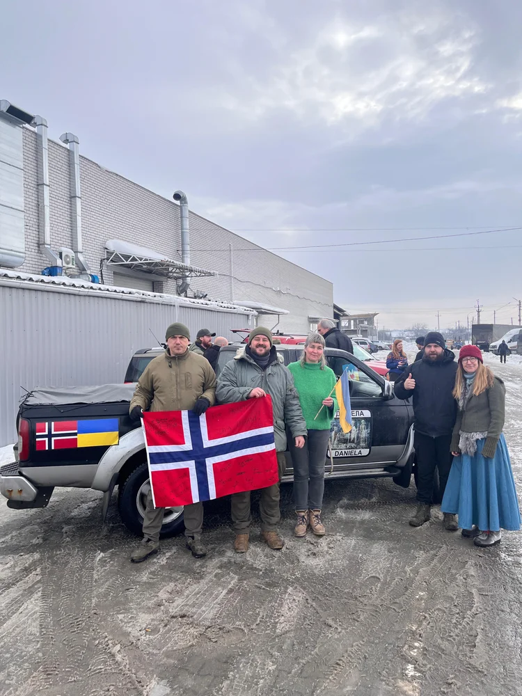Endelig fikk vi møte Anton og Taras for å overlevere bil #87Daniela fra SLAVA Ukraini Norway. Etter å ha kjørt 3000 km fra Sogn hele veien til Pavlograd i Øst-Ukraina var det en stor opplevelse å få møte heltene og se bilen kjøre av gårde for å bidra til å redde liv og forsvare landet. Dette er sterke karer som slåss for landet sitt, slåss for at barna sine skal få vokse opp i frihet, kunne på skolen og leke ute og inne uten redsel for raketter. De slåss for å kunne komme tilbake til sine vanlige liv. På tross av de store tapene landet har lidd; likevel sitter smilene lett. Men det hviler også et stort alvor over folk vi snakker med. De setter stor pris på den materielle, men også den moralske støtten fra Norge , etter fire år med krig er mange redde for å bli glemt! Tenk om norske soldater, mellom aktiv kamp, spising og soving, hadde vært nødt til å drive pengeinnsamlingfor å skaffe en bil, nok overvåkningsdroner eller vinterklær? Dette er hverdagen her i Ukraina! Det er et forbruk på 4000 biler langs fronten hver måned, og behovet for nytt materiell er stort. Måtte #Daniela, samt Sonja, Ulyana og Natalka og deres sterke venner ha et langt og meningsfylt liv, may the force be with you. Se gjerne Facebook-siden Slava Ukraini Norway for flere historier om bilene våre.