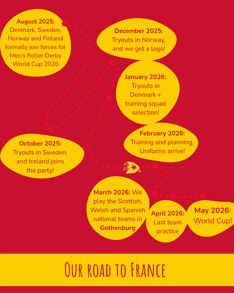 With the national team Kalmar Union, the five Nordic countries stand together: We strengthen Nordic open-gender roller derby and inspire future generations by competing under the same banner at the 2026 World Cup. We need your help to get there!