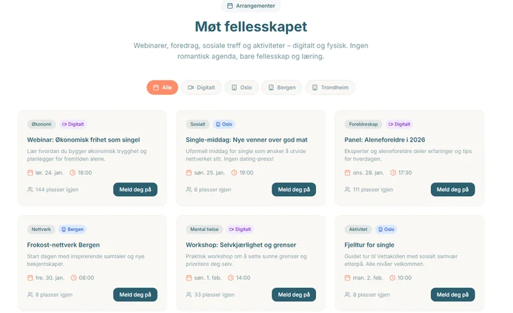 Et inkluderende, kunnskapsbasert og ikke-romantisk fellesskap – for alle som står alene, og for dem som vil hjelpe.
