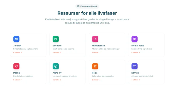 Vi kobler single med eksperter innen økonomi, foreldreskap, helse, jus og mer – og skaper et fellesskap basert på kunnskap, trygghet og verdighet.
