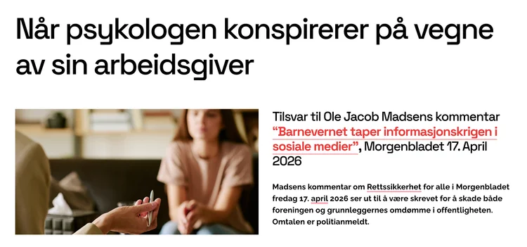 Han går svært langt i å påstå at vi presenterer udokumenterte påstander, i kombinasjon med det han fremstiller som konspiratoriske påstander om staten Norge. Blant alle sakene vi løfter frem, fremstår det som om det særlig er barnevernssakene som er Madsens akilleshæl.