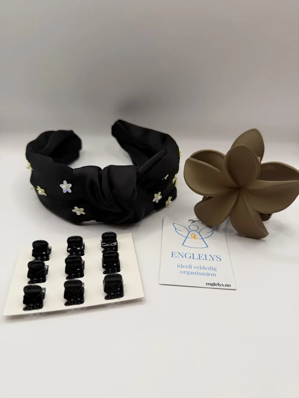 Stilfull hårtilbehørspakke til hverdag og fest. Du kan velge denne belønningen som takk for ditt bidrag til innsamlingen for barna ❤️