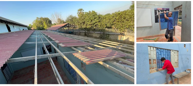 3. Gjennom oppussingsprosessen hever vi kompetansen til de lokale. Vi viser dem hvordan og hvorfor vi bruker verneutstyr, kjøper inn nødvendige maskiner (gresset ble klippet med saks og kjøkkenkniver for et par måneder siden!), jobber side om side med dem, forklarer hvorfor ledninger ikke bør ligge inntil glovarme metalltak… osv.