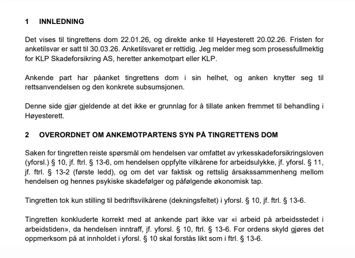 Ellers har KLPs tilsvar til anken omsider kommet. Og det var som forventet: Jeg var ikke på jobb da jeg oppdaget elevens grenseoverskridelser, så jeg har intet grunnlag for å fremme forsikringskrav. Så det ...